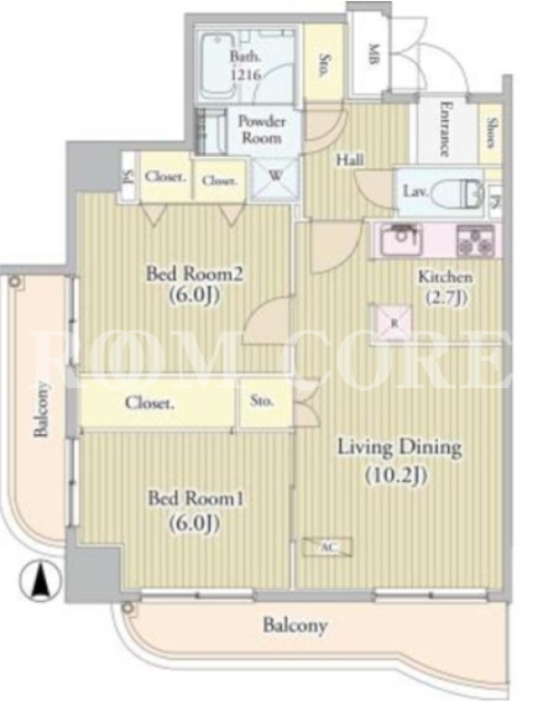 | 間取内容 | 2LDK 〜 2LDK | 面積 | 56.46m²~59.39m² |