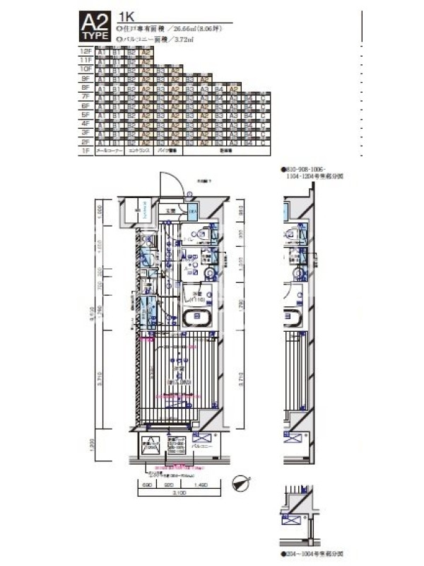 | 間取内容 | 1K 〜 1K | 面積 | 25.80m²~26.66m² |