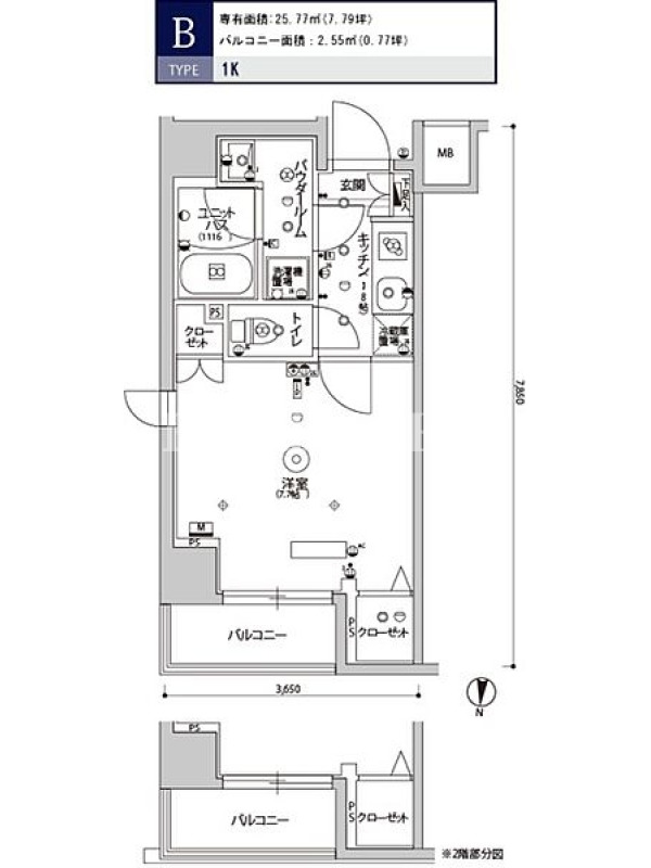 | 間取内容 | 1K 〜 1K | 面積 | 25.77m²~25.77m² |