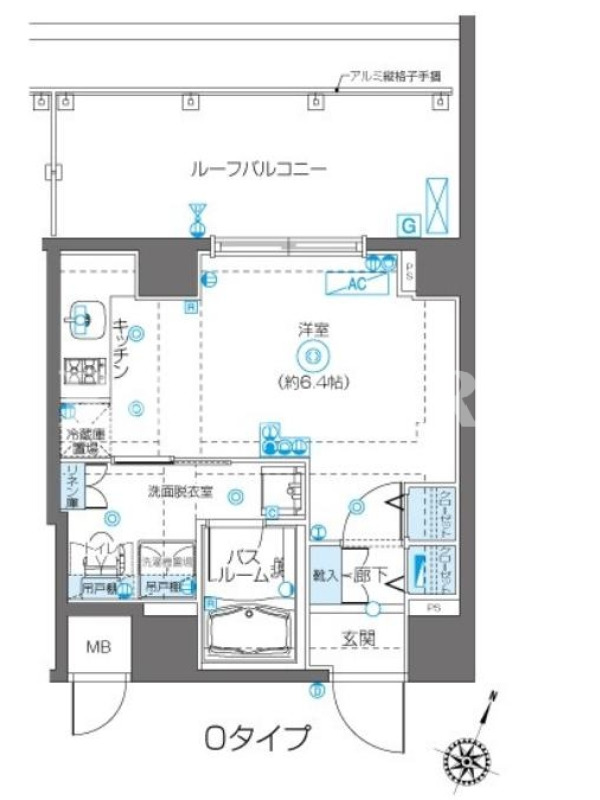 敷金1.0ヶ月、 北向き、 広さ25.44平米のお部屋です。