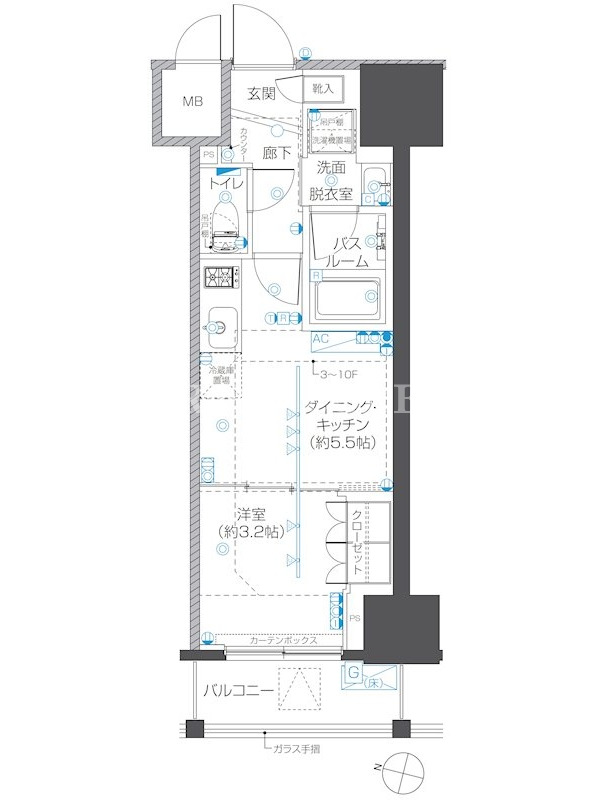 | 向き | 南西 | 建物構造 | RC |