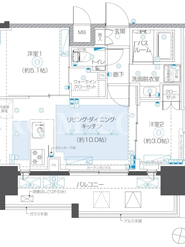 | 向き | 北東 | 建物構造 | RC |